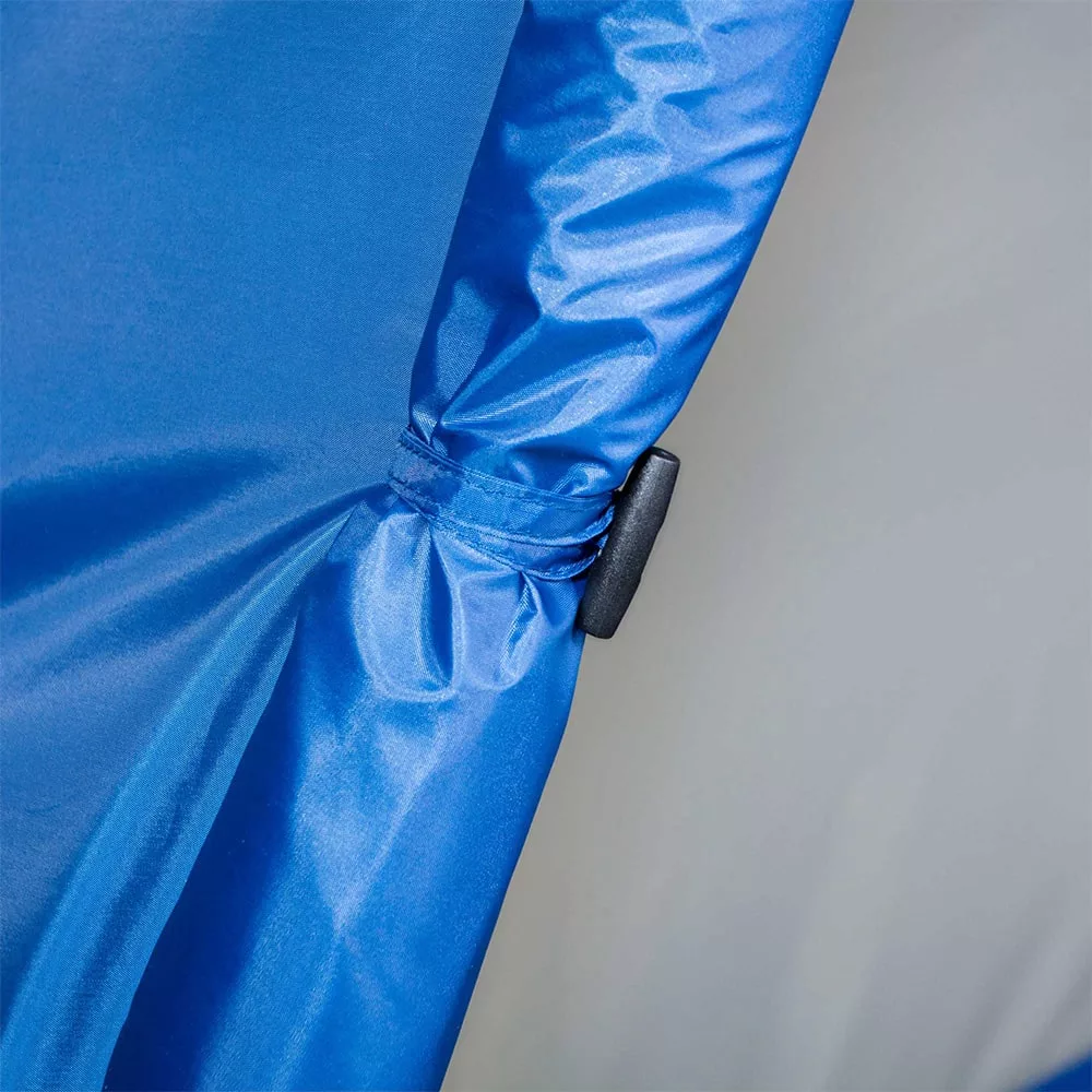 Un aspecto destacado es su alto nivel de protección ya que tanto el cubre techo como el suelo poseen una impermeabilidad de 3000 milímetros, complementada con costuras selladas para evitar cualquier filtración de humedad. Además, el tejido cuenta con protección solar UPF 50 plus y un faldón en la parte frontal que mejora la aislación térmica y climática. La carpa incluye salidas de ventilación estratégicas para mantener el aire fresco en el interior, dos bolsillos organizadores y un colgante para lámpara que optimiza el espacio habitable.