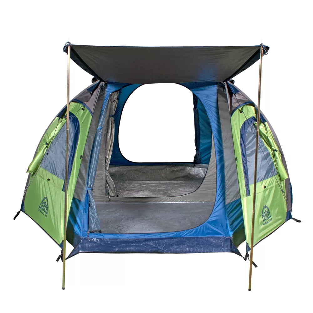 La carpa Doite Gran Ruca 4+2 ofrece un amplio espacio para 6 personas con 2 habitaciones separadas y 3 puertas. Con 3000mm de impermeabilidad, costuras selladas y acceso electrico, es ideal para climas cálidos gracias a sus múltiples ventilaciones y protección UPF 50+.