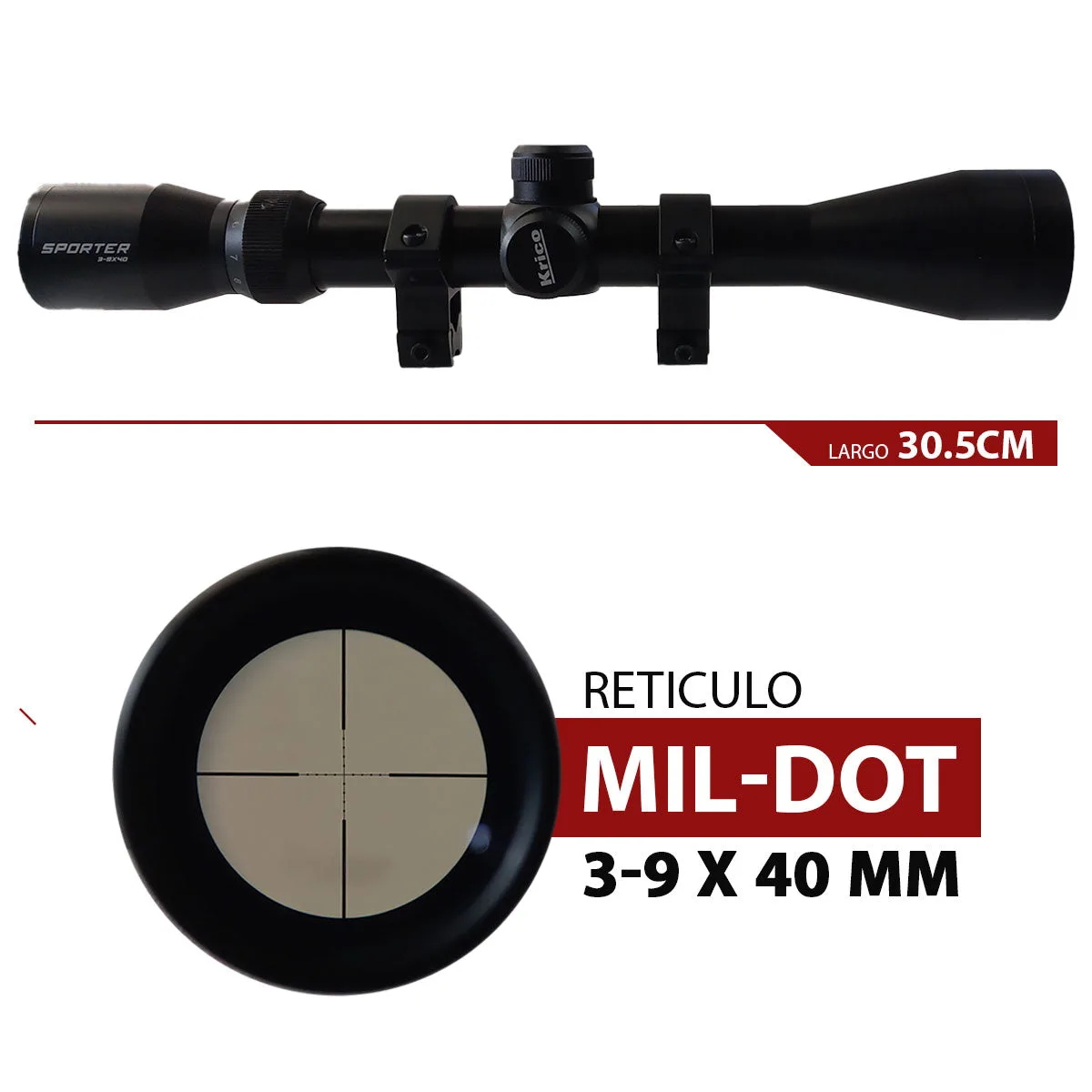 • Incluye: Mira, montaje, cubre lentes y herramientas de colocación
