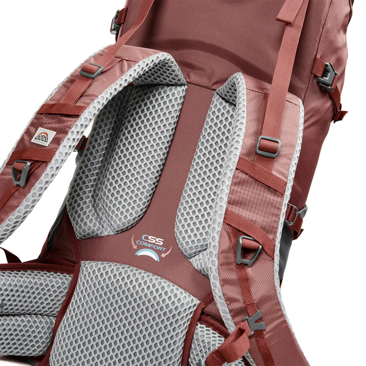Su sistema de carga está diseñado para optimizar el peso, permitiendo largas caminatas en terrenos complejos. Posee materiales transpirables en las zonas de contacto para mayor confort térmico. Dimensiones optimizadas para travesías.