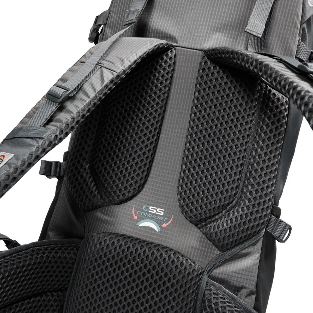 El sistema de carga está diseñado para optimizar la distribución del peso, brindando estabilidad en terrenos irregulares. Su color gris neutro y acabado técnico la posicionan como una opción versátil para cualquier expedición.