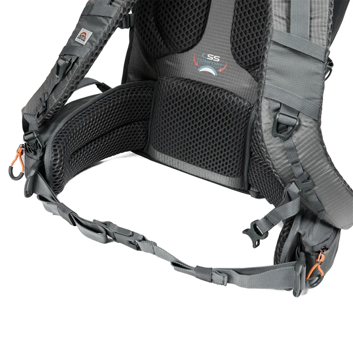 Incluye cinturón de ajuste lumbar desmontable, cinturón de ajuste pectoral, salida para manguera de bolsa de hidratación, correas de compresión laterales, compatible con portacascos, porta Piolet-bastón, reflectante de seguridad, cierres repelentes al agua. Tipo de espalda: CSS SYSTEM: Cuenta con acolchado en las zonas de más presión, aportando una sensación de confort y ajuste. Cuenta con bolsillo multiuso en el cinturón lumbar, y correas fáciles de ajustar. Los tirantes en forma de S mejoran la sensación de ajuste.