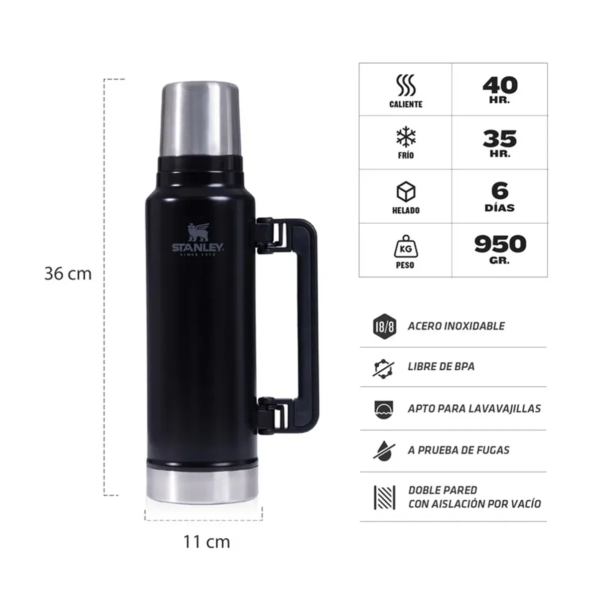 – El termo clásico de 1.4 litros es un producto icónico que ha demostrado tener un diseño elegante y una construcción robusta, lo que lo convierte en un artículo durable y confiable.